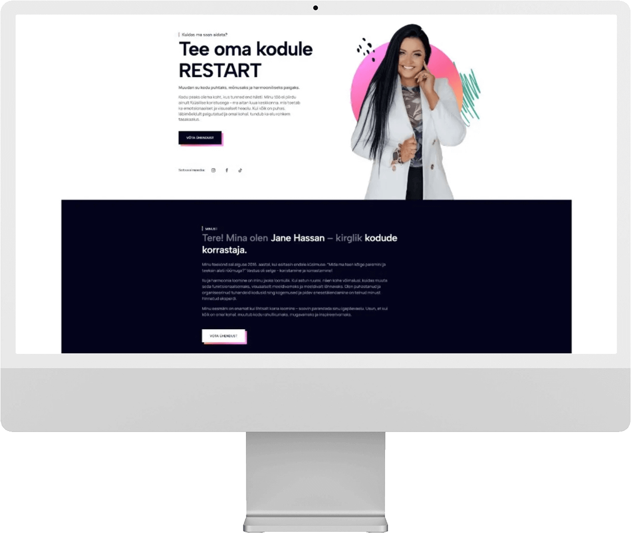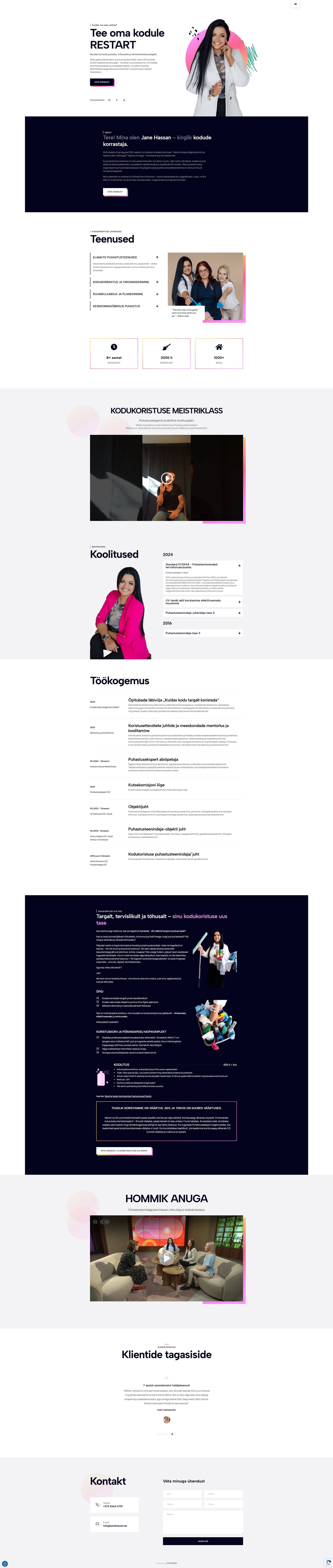 Jane Hassani koduleht kujundati ja arendati uue terviklahendusena, mis ühendab tema isikliku brändi, teenused ja koolitused ühele selgele ja kergesti kasutatavale lehele.